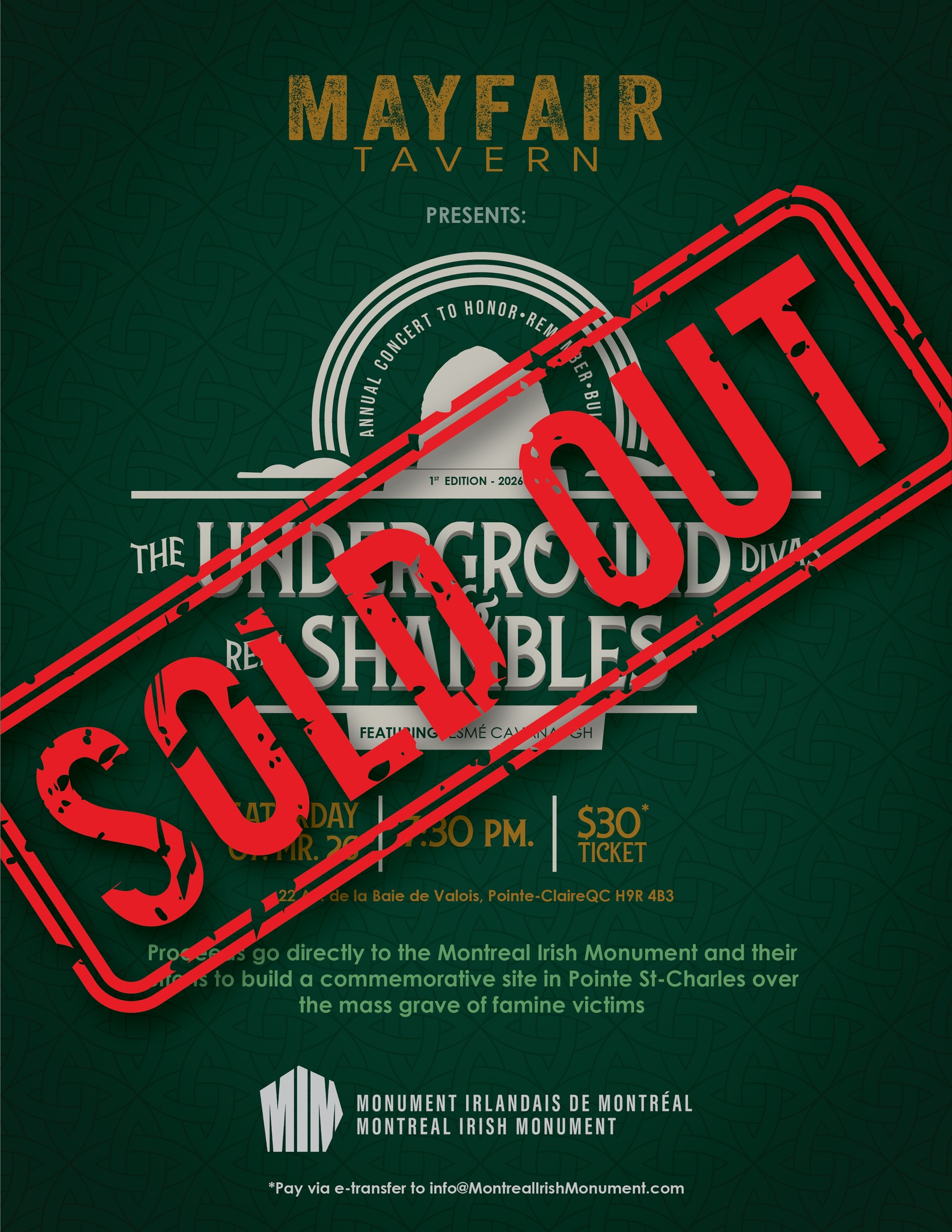 Celebrate the start of the Irish season with an unforgettable night of live music at the historic Mayfair Tavern. The Montreal Irish Monument is proud to present The Underground Divas and The Reel Shambles, featuring Esmé Cavanaugh, for an evening of spirited tunes, rich harmonies, and infectious energy.